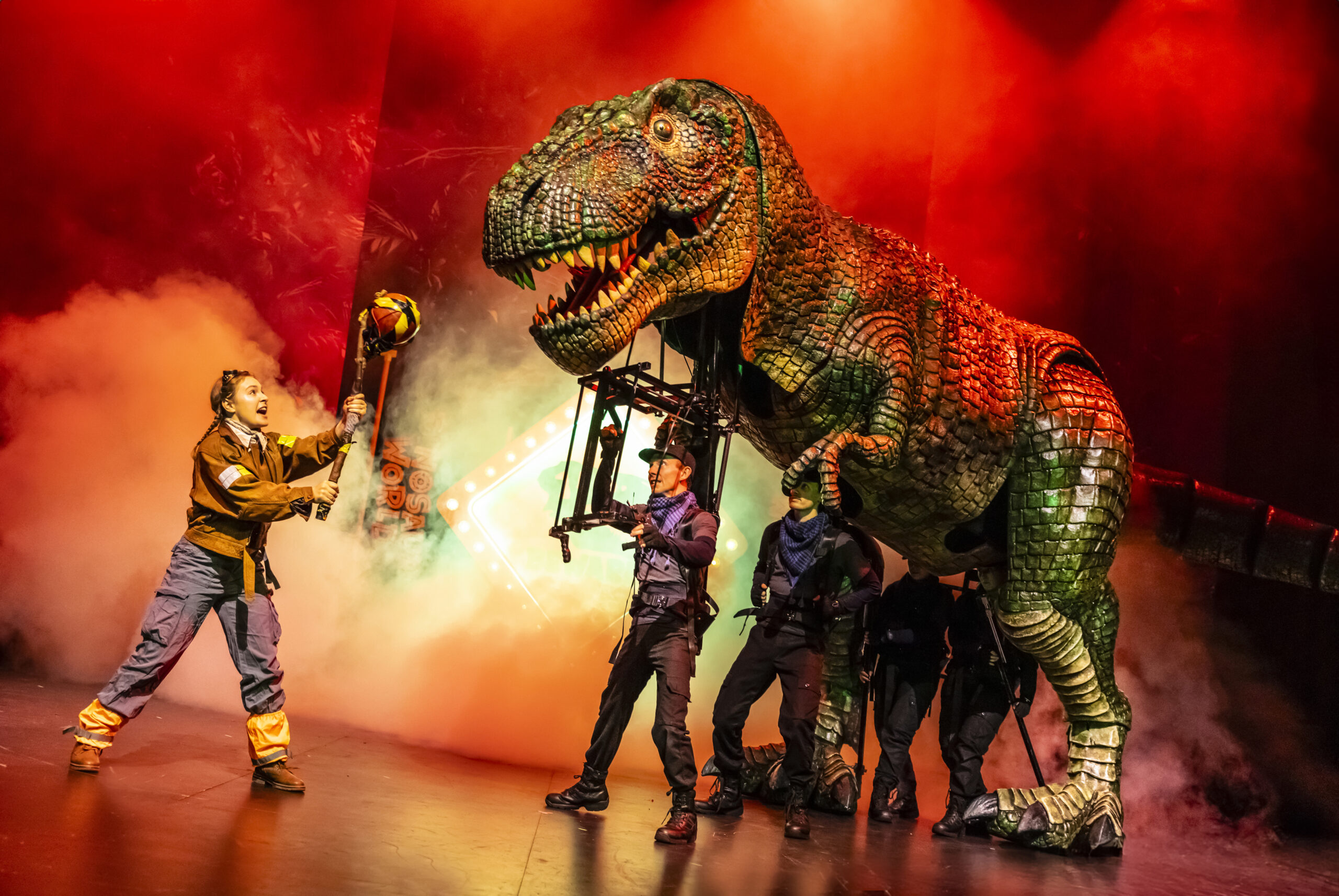 In addition to Derek Bond and Nicoll Entertainment, the creative team and production staff for Dinosaur World Live includes Laura Cubitt (co director), Rhea Locker-Marsh (associate director), Emma Brunton (associate director), Max Humphries (puppet designer, for Unit 9 Puppet Workshop), James Perkins and Victoria Smart (co-set and costume designers, for Good Teeth), John Maddox (lighting designer), Tom Mann (sound designer), Hayden Camidge (company stage manager – tour), and Nicole Roper (tour manager).