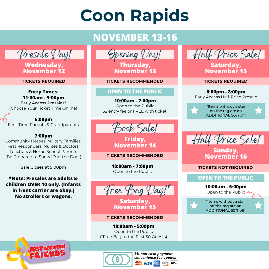 Just Between Friends Sale in Coon Rapids Nov. 13th-16th