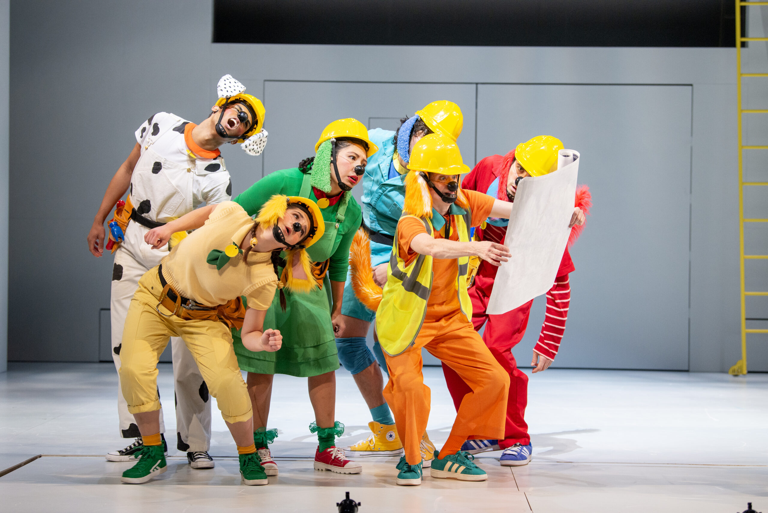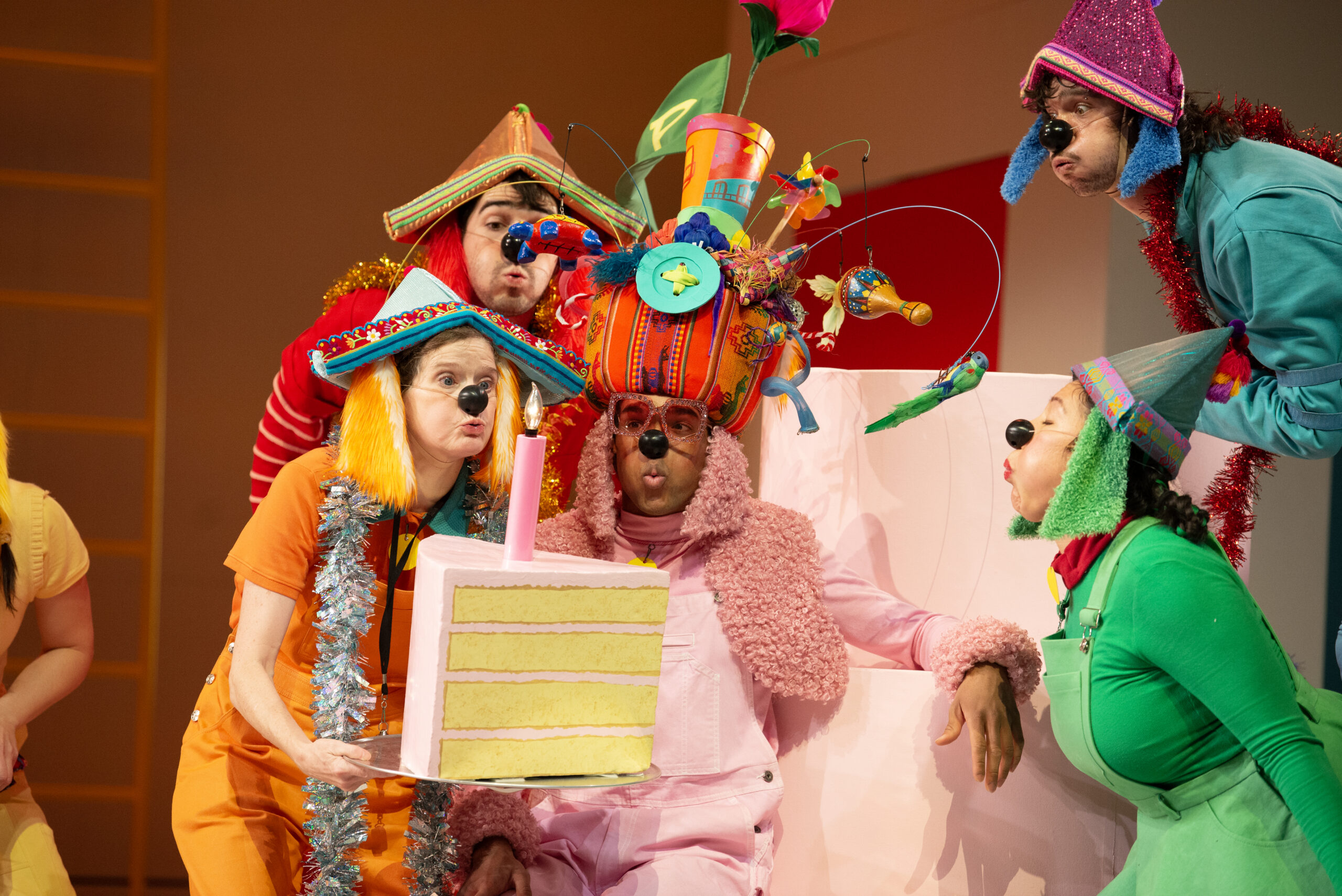 The cast of Go, Dog. Go! • Ve Perro ¡Ve! features Kimberly Richardson* as MC Dog, Cooper Lajeunesse as Blue Dog, Zachary David Hodgkins as Red Dog, Anna M. Schloerb (Member, CTC Acting Cohort) as Yellow Dog, Julia Diaz (Member, CTC Acting Cohort) as Green Dog, and Eric Samuel Romero as Hattie/Spotted Dog. The understudies for Go, Dog. Go! • Ve Perro ¡Ve! include Becca Claire Hart* (MC Dog, Yellow Dog), Keegan Robinson (Blue Dog, Hattie/Spotted Dog), and CTC Acting Company member Janely Rodriguez* (Red Dog, Green Dog). Victor Zupanc‡ and Joe Cruz‡ will provide live music onstage.