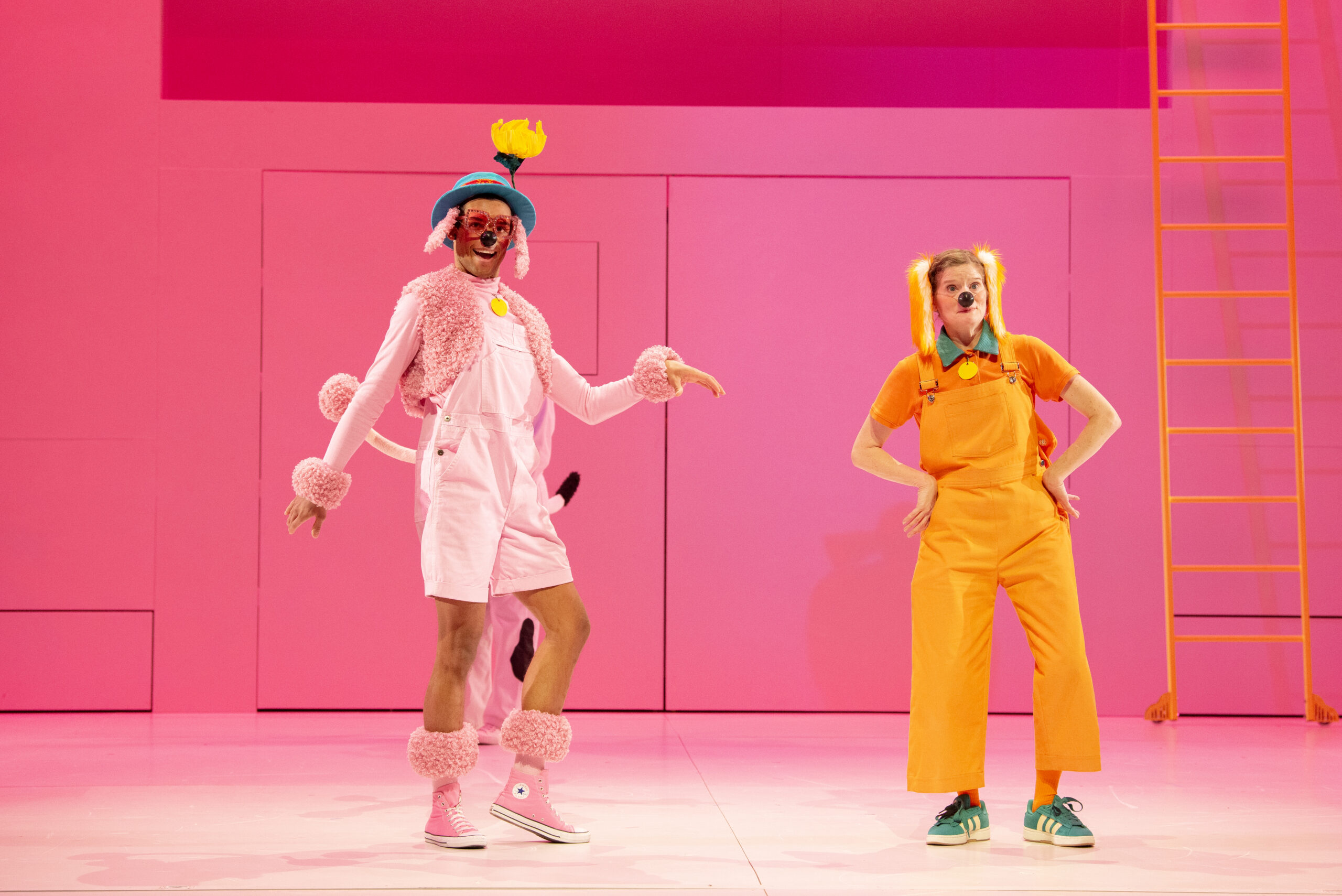P.D. Eastman’s classic book lands onstage with roller-skating, bike-riding, and scoot-scootering dogs! Over here a dog plays baseball; over there a dog prances about in a funny hat; everywhere dogs swim underwater, drive race cars to fiestas en los árboles, and speak—in both Spanish and English! Soon, you’ll be singing along with this bilingual spectacle that makes no sense (and TOTAL sense), all at the same time!